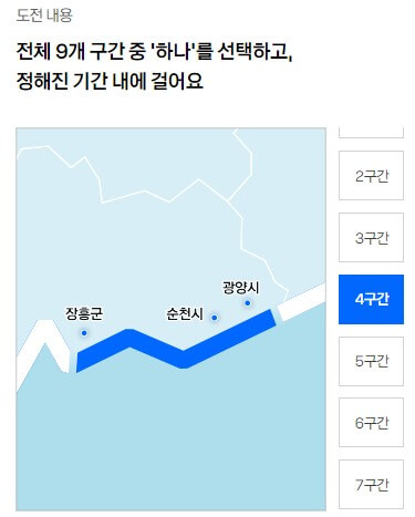 걷기 희망 구간은 지원서 작성 시 선택합니다.